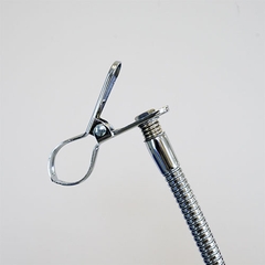 El soporte flexo para secador resulta muy práctico para disponer de las manos libres y cepillar el manto a la vez que secamos.