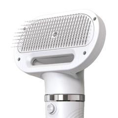 Cuando haya terminado de cepillar y secar el pelo de su mascota, simplemente pulse el botón y las púas se retraerán hacia el cepillo para eliminar todo el pelo acumulado, quedando listo para el siguiente uso.