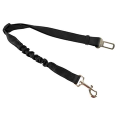 Fabricado en nylon, tiene una hebilla de acero que va directamente al enganche del cinturón de seguridad. Se sujeta al collar o arnés de su perro con un fuerte mosquetón metálico.