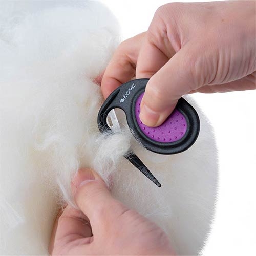 El cortanudos de precisión Ibáñez para perros tiene una forma especial que le permitirá ir separando los nudos grandes en otros más pequeños, para finalmente poder deshacerlos con el cepillo y peine.