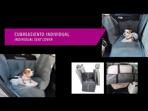 El cubreasientos individual Ibáñez protege la tapicería de su vehículo durante los viajes en coche con su perro. Su diseño permite compartir el asiento trasero con otros pasajeros.