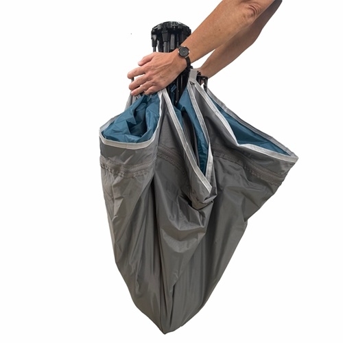 Fabricada con materiales resistentes y ligeros, se monta y pliega en cuestión de segundos, lo que la convierte en una opción cómoda y fácil de transportar.