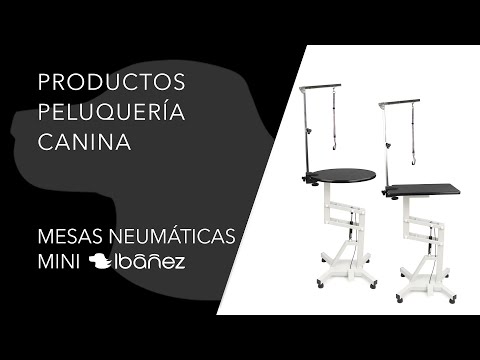 Mesa neumática de altura ajustable para perros de razas pequeñas.