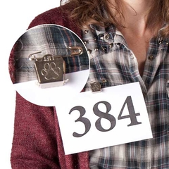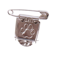 Pinza con imperdible que sirve para sujetar el dorsal en la chaqueta del handler o presentador de los perros que se presentan en exposiciones caninas.