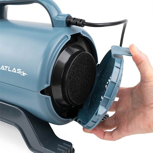 Puede usarse como expulsor, trabajando a máxima velocidad, sin temperatura y con boquilla estrecha. Y como secador, jugando con la velocidad, las diferentes temperaturas y sin boquilla o con la más abierta.