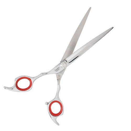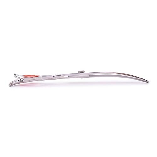 Gran tijera profesional Ibáñez curva de la línea Sakura para peluquería canina, de corte japonés y hojas convexas.