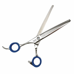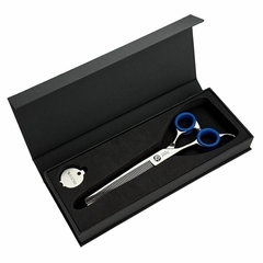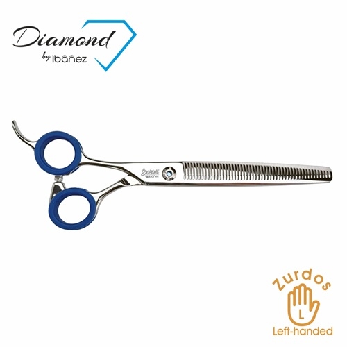 Tijera Ibáñez profesional de esculpir para peluquería canina, con dientes en uno de los filos, diseñada para usuarios zurdos.