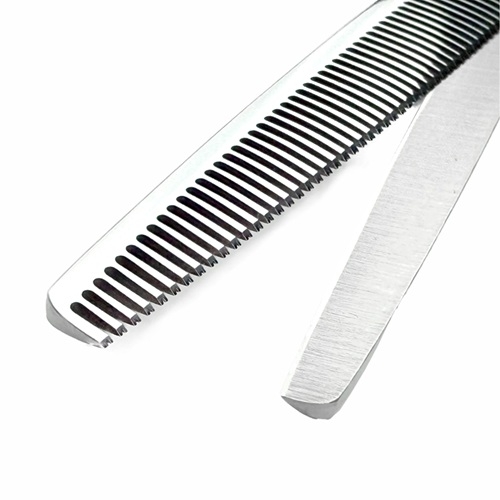 - Para vaciar pelo fino poco denso. Para el vaciado de pelo muy denso como el de las razas de capas dobles son aconsejables tijeras con otro diseño (dientes más separados).