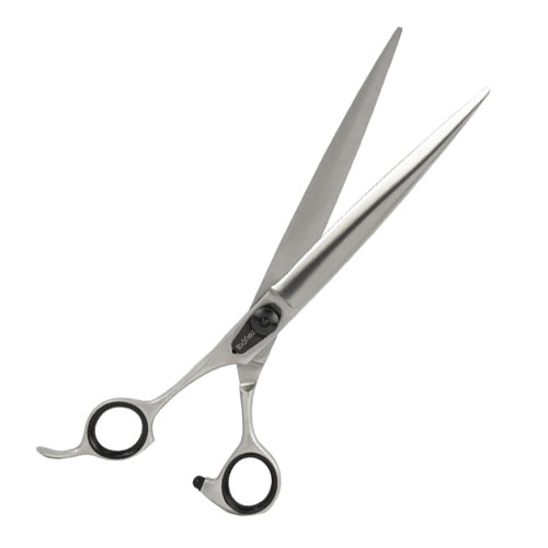 Tijera recta para zurdos de peluquería canina, fabricada en acero japonés 440C.